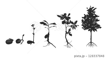 Life cycle of oak tree svg, Life cycle of oak tree silhouette, Cycle of tree silhouette, Life cycle of oak vector, Life cycle of olk seed svg, Cycle of tree svg, Growing oak seed silhouette V02.