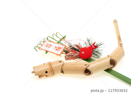 巳年 年賀素材 竹製のクネクネへび