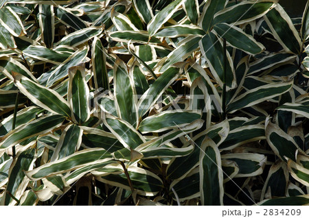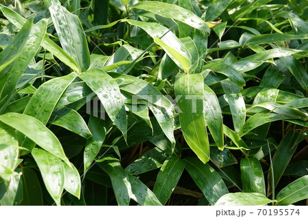 ヘルシーな植物の背景素材・隈取の広いクマザサの葉・ベタ横位置アップ