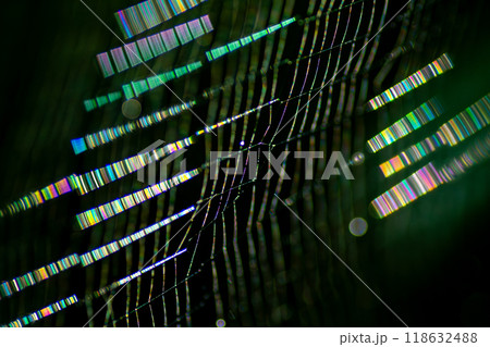 マクロ撮影 朝露に濡れて輝く蜘蛛の巣