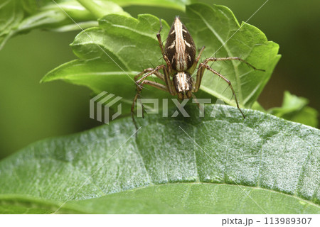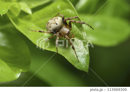 植物葉子上爬行的蜘蛛微距特寫