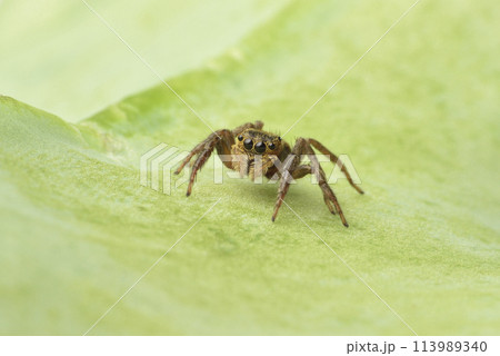 室內植物葉子上爬行的跳蜘蛛