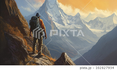 険しい山を登山する人 person climbing a steep mountain(AI)