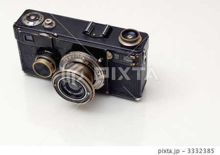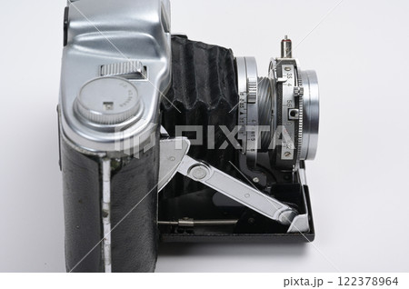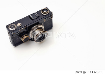 白背景のフィルムカメラとレンズ アナログ写真のイメージ