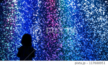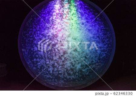 虹色にライトアップされたミズクラゲの大群