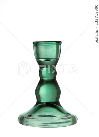 A vintage-style emerald green glass candlestick holder with a classic shape, isolated on a clean white background.