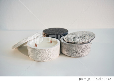 Capacities for candle on the white surface