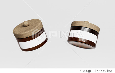 Glass Jar with Wooden Lid and Blank Label Mock up. 3D Rendering.