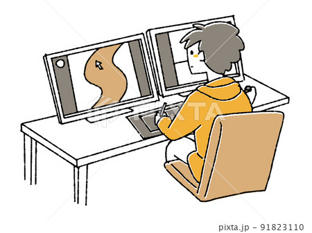 液晶タブレットを使って絵を描くクリエイター パソコンを使いクリエイティブな仕事をする人