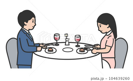 レストランで食事をする男女のイラスト