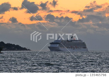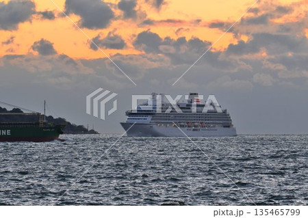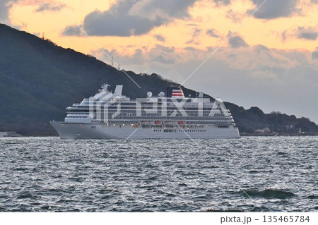 明石海峡を通過するクルーズ客船 夕景