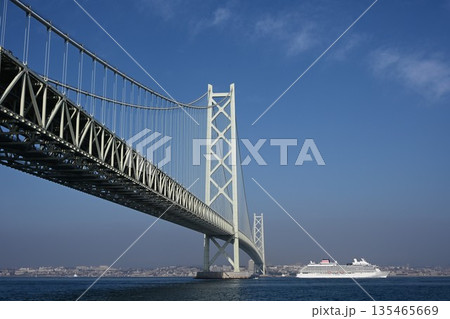 明石海峡大橋とクルーズ客船