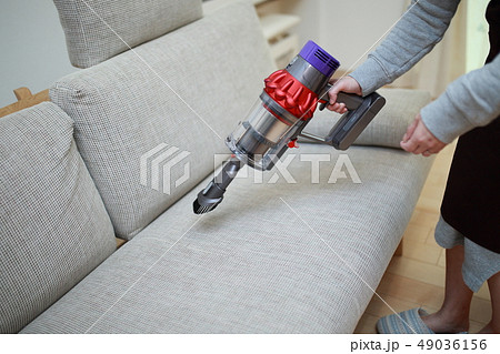 掃除 (清掃 掃除機 顔なし 女性 主婦 ボディパーツ ママ 家事 電化製品 ソファ リビング 手)
