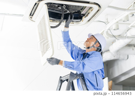 作業着の男性 エアコン 点検