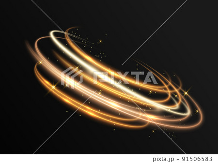 Glow effect. Spin line. Light ring motion or circular swirl. Circle and oval spirals. Round flare speed blur. Vortex shine. Tornado twirl with luminous sparkles. Vector elements set