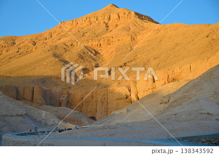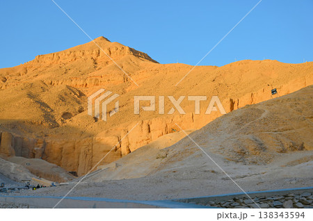 ナイル川東岸から見たルクソール西岸の風景、東南から見た王家の谷のある丘