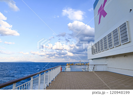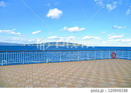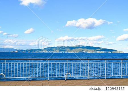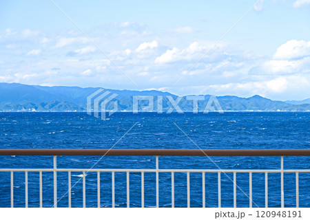 足摺岬沖を通航する東京九州フェリー、船上デッキからの眺望