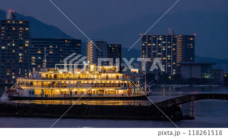 夜の大津港を出港する観光船ミシガン ナイトクルーズ