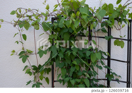 成長するクレマチスの蔓と葉