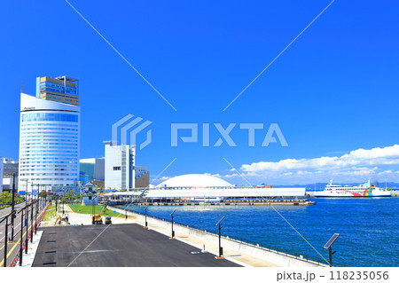 玉【香川県】快晴のサンポート高松藻公園からのサンポート高松