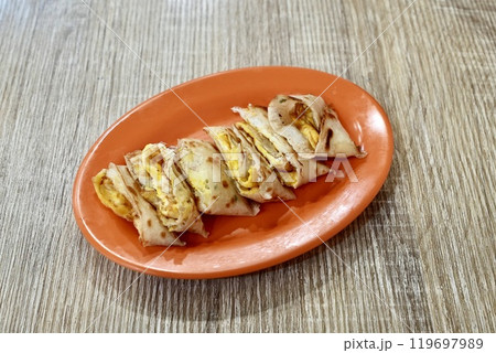 台湾の朝ごはん・蛋餅(ベーコンダンピン)
