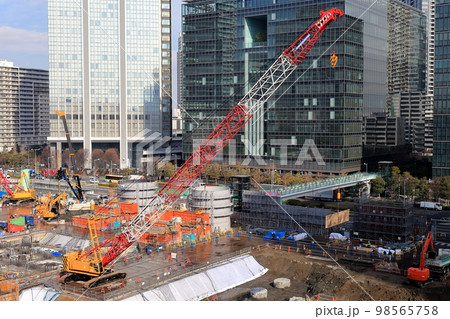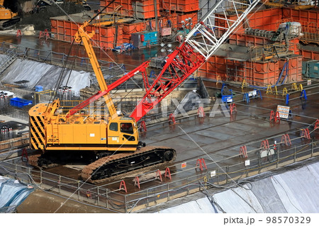 クローラークレーンのある建設現場 イメージ