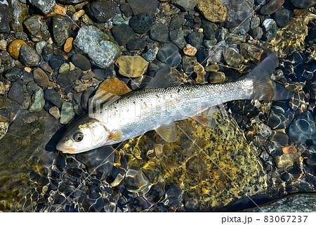 赤腹ウグイを河原に横たえて撮った