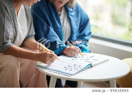 Senior solves sudoku or a crossword puzzle to slow the progressi