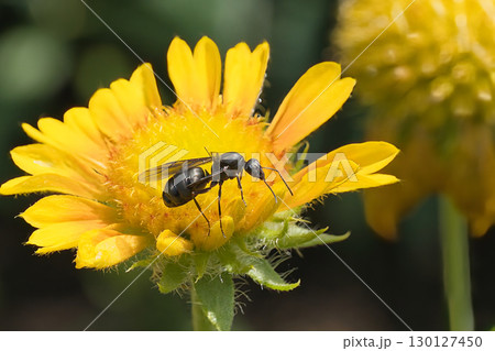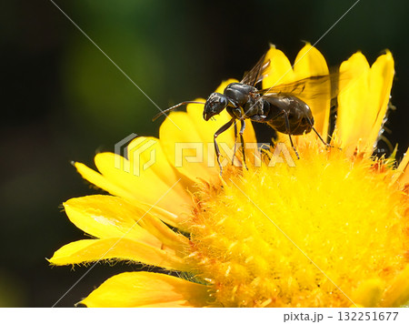 花に止まるクロヤマアリ