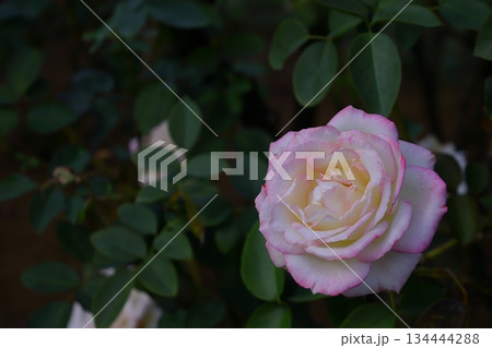 家の周りの草花 四季の色々 初夏のバラ園の花壇を清楚で美しい花が彩りを添えています