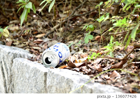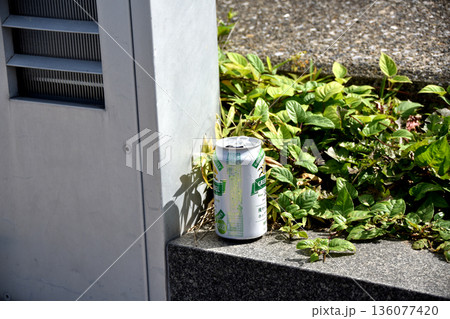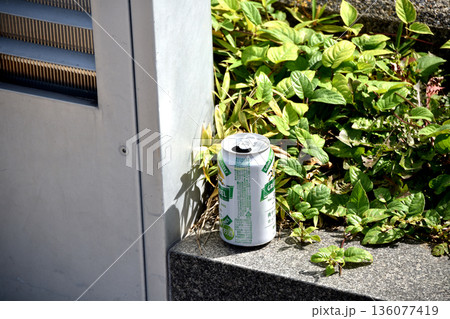通路脇に捨てられた空き缶