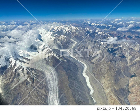ドバイー羽田の機内より眺めるヒンドゥークシュ山脈の氷河