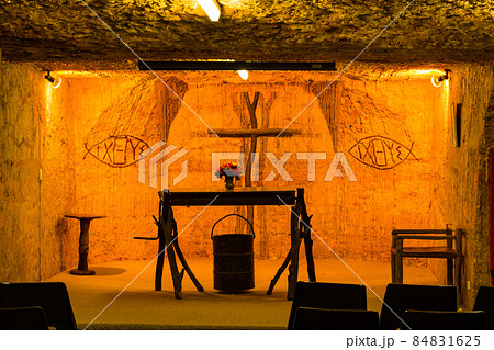 オーストラリア アウトバックにあるクーバーペディのカタコンベ教会の聖堂内