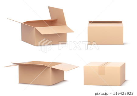 Cartoon boxes. Cardboard delivery boxes, open and closed shipping packages, parcel delivery boxes flat vector illustration. Carton boxes pile