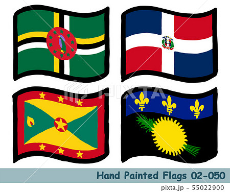 手描きの旗アイコン,ドミニカ国の国旗,ドミニカ共和国の国旗,グレナダの国旗,グアドループの国旗