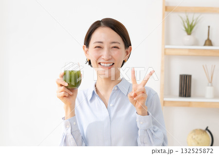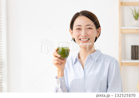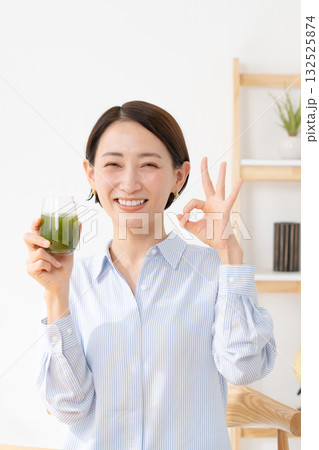 青汁を飲む女性