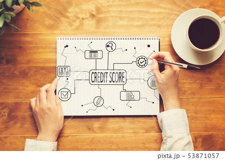 Credit score theme with a person writing in a notebook