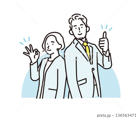 ポジティブな表情でポーズをとる男女のビジネスパーソンのイラスト素材
