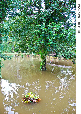 冠水したロッジの庭(グヌン・ムル国立公園/東マレーシア・ボルネオ島)