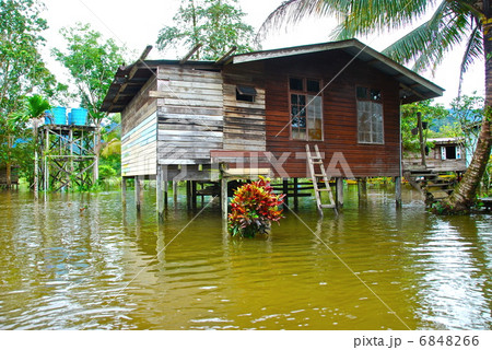 冠水したロッジ(グヌン・ムル国立公園/東マレーシア・ボルネオ島)