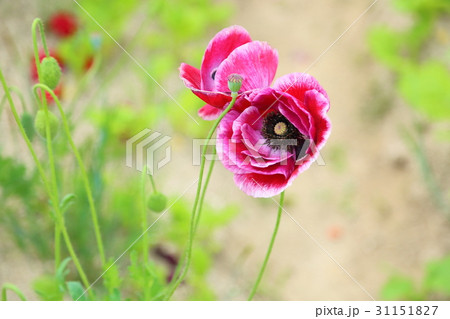 ピンク色のポピーの花と青空の風景