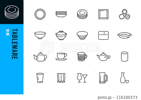 シンプルな食器のラインアイコン