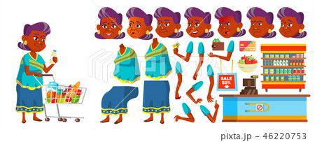 Indian Old Woman Vector. Senior Person Portrait. Elderly. Aged. Animation Creation Set. Sari. Face