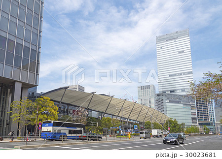東京都八重洲南口夜景 大丸ビル バスターミナル 都市 ビル群 横