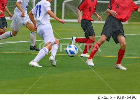 小学生サッカー試合、芝、ゴール前、後ろ姿