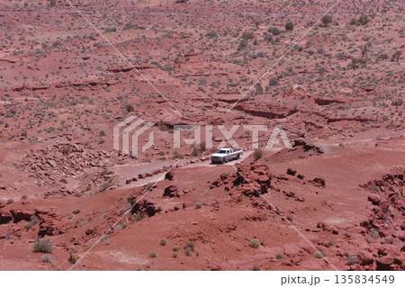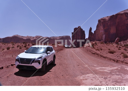 モニュメントバレーのハブ・ポイントからトーテムポール・ビューポイントの道路を進むSUV