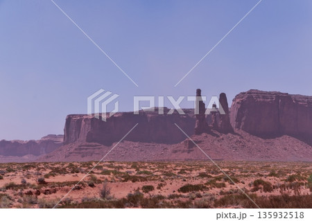 モニュメントバレー・バレードライブのバランスロック傍からスリーシスターズ
