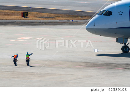 空港の風景 誘導するグランドハンドリング 東京都大田区