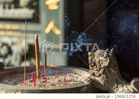 廟宇香爐裝飾與餘燼