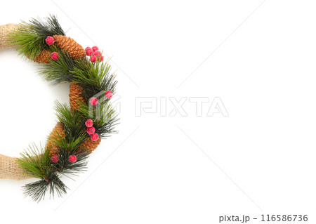 Green christmas wreath isolated on white background. Thanksgiving Day.